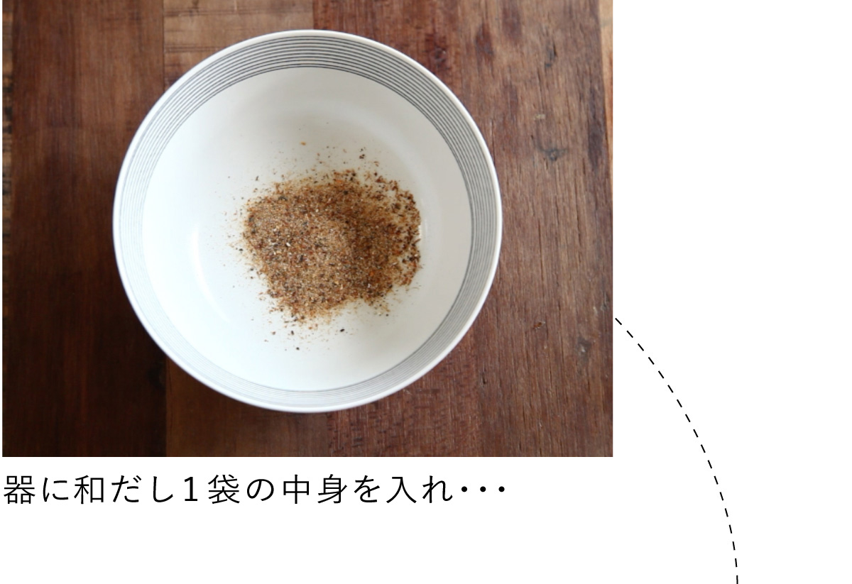ラーメン屋さんのスープといえば、ふつう大将が何時間もかけて作るものですが、「大江戸ラーメン」のスープのベースは、たった5秒で完成です。4種類の海の恵みと、4種類の山の恵みが溶け込んだ「わたしの和だし」ならでは手軽さです。