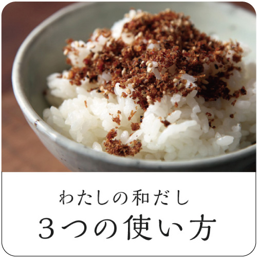 「わたしの和だし」は、魚介だしと野菜だしをバランスよく調合した、いままでにない本格だしパックです。魚介のコクにほんのり漂う野菜の甘みが、料理のおいしさをぐんと引き立てます。和風料理にも洋風料理にも使えるので、楽しみ方は無限に広がります。